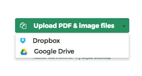 Du kan välja PDF filer från Dropbox eller Google Driv också.